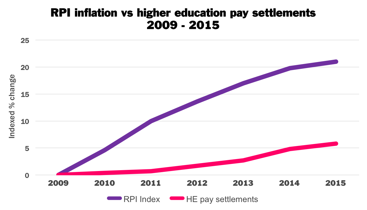 Pay in higher education has fallen in value against inflation by 14.5% since 2009. At the same time there remains a substantial gender pay gap in many institutions and the growth in casual contracts undermines the job security of all staff. In response to these issues, the employers have made an offer to increase salaries for 2016/17 by just 1.1%, and refused to commit to any meaningful action to address gender inequality or casualization.
